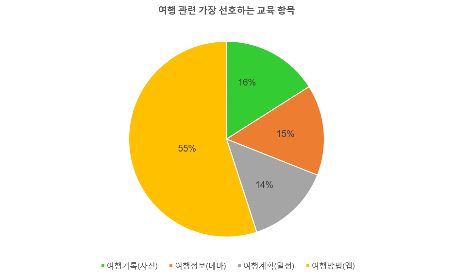 자유여행을 하더라도 여러 명이 단체로 가게 되면 개인의 흐름이 방해받을 수 있습니다. 개인마다 선호가 달라 같은 동선에 있어도 박자가 다르게 움직이기 때문입니다. 그렇다면 같이 가되 부분적으로 개인의 자유를 허용하는 방식이면 좋을 것 같습니다. 같은 곳에 가더라도 전 일정을 모두 같이 하기보다는 일정 시간은 각자가 원하는 대로 혼자 또는 소규모로 나누어 진행하면 더 좋을 것 같습니다. 동선을 동일하게 하더라도 중간에 여유시간을 충분히 잡아두면 개인의 자유가 더 커질 수 있습니다. 개인의 자유가 커지려면 짧은 시간이나마 단독으로 움직여도 여행을 즐길 수 있어야 합니다. 단독으로 여행을 해내려면 무엇보다 여행 관련 앱(지도, 교통, 언어, 음식점 등)을 잘 이용할 수 있으면 좋습니다. 그래서 그런지 2021년에 발표된 '꿈꾸는 여행자 운영사업' 참여자들의 후기를 보면 앱을 활용하여 여행하는 방법을 배우기를 원하는 비율이 55%로 가장 높게 나타났습니다.